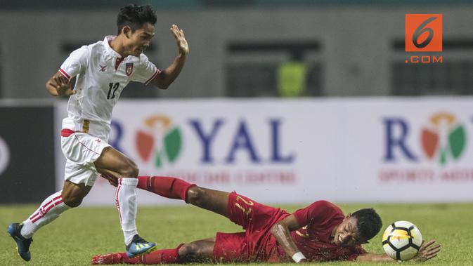 Jakarta - Timnas Indonesia mengantungi kemenangan telak 3-0 dalam laga uji coba versus Myanmar di Stadion Wibawa Mukti, Cikarang, Rabu (10/10/2018). Tiga gol Tim Merah-Putih dicetak di sepanjang babak pertama.
