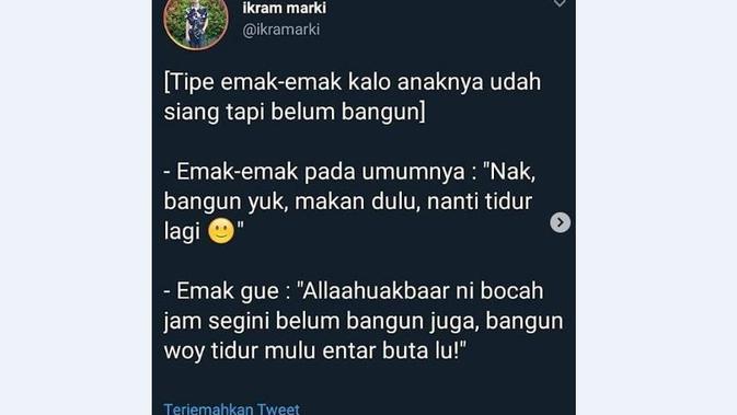 Liputan6.com, Jakarta Kalian yang masih tinggal dengan orang tua, pasti sudah hapal dengan cara orang tua membangunkan kalian bukan? Ada yang berteriak, bahkan mungkin menyiramkan air kalau kalian tidak juga bangun. Percaya atau tidak, hal-hal yang seperti itu justru akan membuat kamu kangen saat dewasa dan sudah tinggal jauh dengan orang tua nanti. Nah, mengutip dari Twitter, kira-kira emak kamu termasuk yang mana? Saksikan Video Pilihan di Bawah Ini: Emak-emak PNS di Bengkulu tidak terima saat mengetahui dirinya ditilang polisi. Ia meminta polisi untuk menasehatinya ketimbang menilang dirinya. Let's block ads! (Why?) October 17, 2018 at 06:02PM via Berita Hari Ini, Kabar Harian Terbaru Terkini Indonesia - Liputan6.com https://ift.tt/2J6cC4Y | | If New feed item from http://ftr.fivefilters.org/makefulltextfeed.php?url=https%3A%2F%2Fwww.liputan6.com%2Frss&max=3, then Send me an email | | Unsubscribe from these notifications or sign in to manage your Email Applets. |