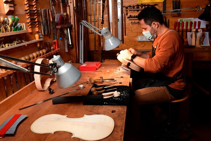 ロックダウン中もバイオリン製作を続けた一人がフェルナンド・リマ氏だ。リマ氏はポルトガル出身の59歳の職人で、新型コロナがクレモナで猛威を振るっている間、自宅から出ることも、親類に会うことも、日光浴を楽しむこともできなかった。しかし、バイオリンに使われているメープルを削り、完璧な形と音に仕上げることができた。