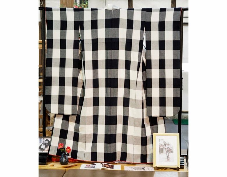 要望は「白黒の格子」である事です。かなり意外でしたね。古風な伝統柄でしたので、ただ、華やかな着物の中にあの柄は面白いと直ぐに思いました。
