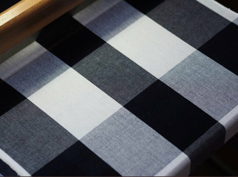 こだわりは黒に近い藍染の糸を使う事、綿である事、格子のサイズ感です。
