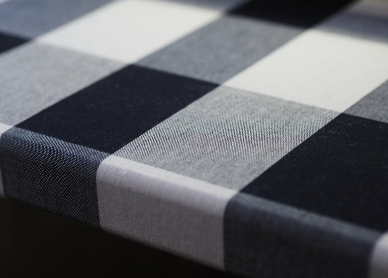 tomiさんによると、この振袖の見本は伝統柄の「弁慶縞」。弁慶縞は弁慶格子とも呼ばれ、縦2色横2色で、縦横同じ太さの幅広の格子縞(縦横縞)のことだという。